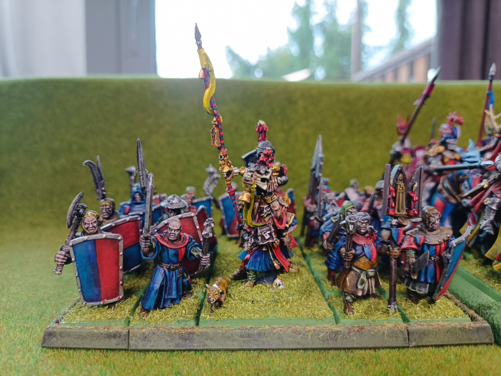 Pielgrzymi, jedna z sensowniejszych piechot w Bretonii. Stubbor, i Ward SV tworzą z nich dosyć ciężki klocek do zniszczenia. Jednocześnie dzięki obecności modelu relikwi zajmującego dużą podstawkę, łatwo jest przygotować oddział który posiada 4 szeregi.