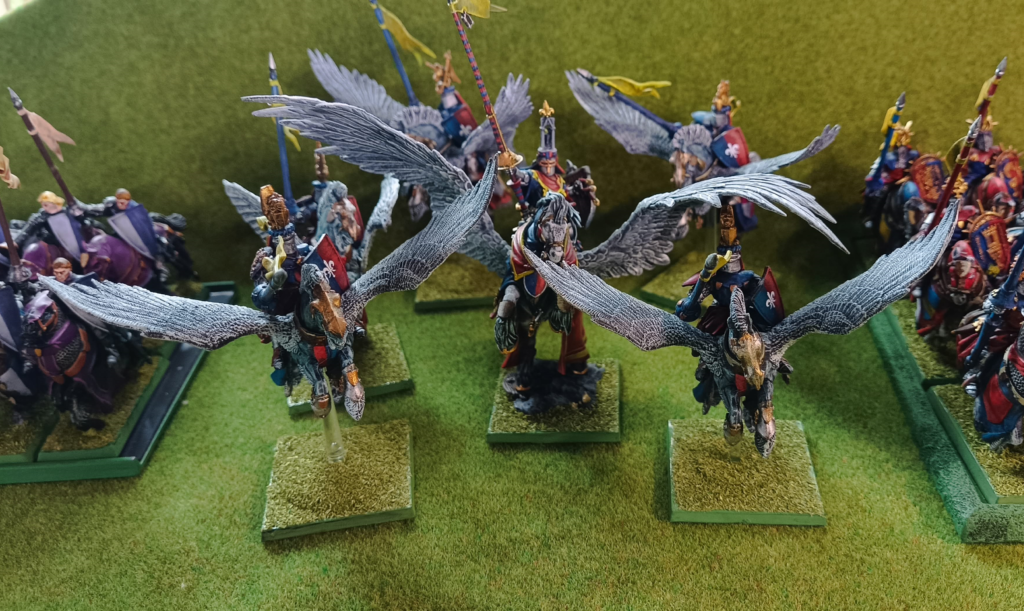Jest to jeden z moich ulubionych oddziałów w Warhammer Fantasy Battle. Rycerze na Pegazach. Postrach spadający na wrogów z przestworzy. Specjalnie dla nich przygotowałem utwór na kanale Youtube Myhammerblog, polecam w szczególności w trakcie malowania! Dobry bretoński Vibe.