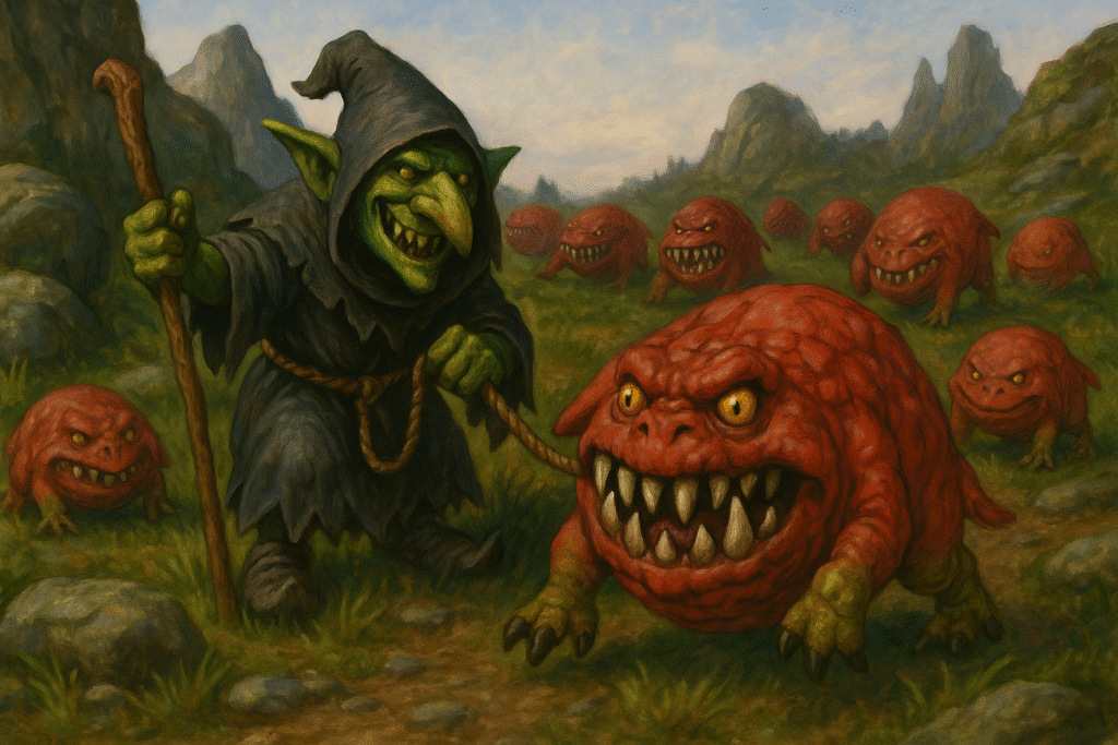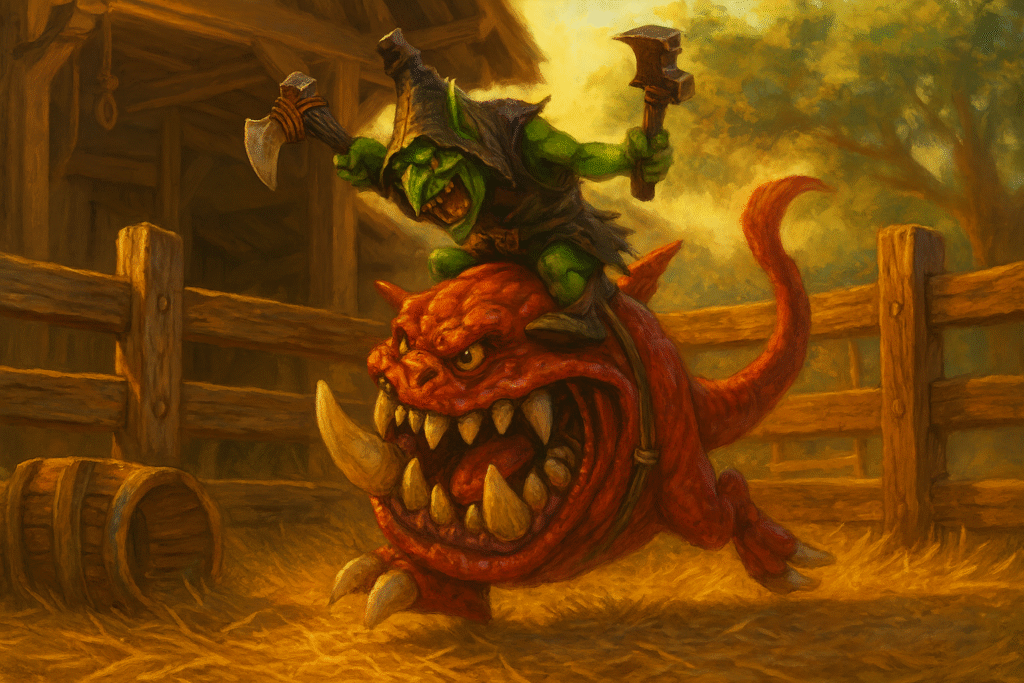 Squigi to stworzenia, które same w sobie są biologicznym żartem. Nie mają oczu, uszu ani rozumu – tylko zęby, mięśnie i niegasnącą żądzę skakania i żarcia wszystkiego, co się rusza (lub nie). Gobliny uznały więc, że najlepszym pomysłem będzie wskoczyć im na grzbiet i zobaczyć, co się stanie. Spoiler: nigdy nic dobrego. Ale za to śmiesznie.